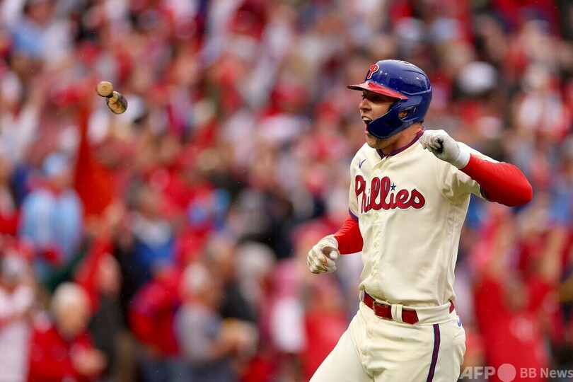 【10月24日 AFP】22MLBは23日、ナ・リーグ優勝決定シリーズ(7回戦制)第5戦が行われ、フィラデルフィア・フィリーズ(Philadelphia Phillies)は8回裏にブライス・ハーパー(Bryce Harper)が逆転の2点本塁打を放ち、サンディエゴ・パドレス(San Diego Padres)を4-3で下してワールドシリーズ進出を決めた。