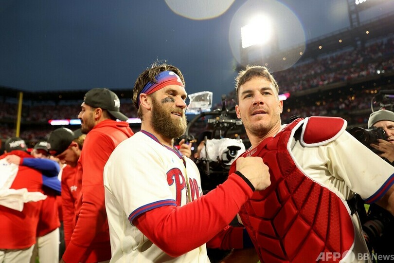 【10月24日 AFP】22MLBは23日、ナ・リーグ優勝決定シリーズ(7回戦制)第5戦が行われ、フィラデルフィア・フィリーズ(Philadelphia Phillies)は8回裏にブライス・ハーパー(Bryce Harper)が逆転の2点本塁打を放ち、サンディエゴ・パドレス(San Diego Padres)を4-3で下してワールドシリーズ進出を決めた。