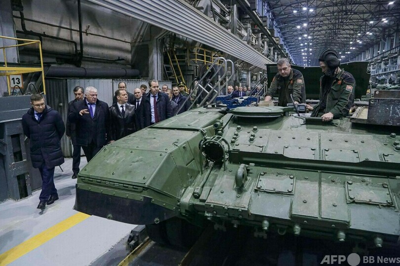 【10月25日 AFP】ロシアのドミトリー・メドベージェフ(Dmitry Medvedev)前大統領は24日、中部ニジニータギル(Nzhny Tagil)の戦車など軍用車両の製造を手掛けるウラルバゴンザボード(Uralvagonzavod)社の工場を視察した。