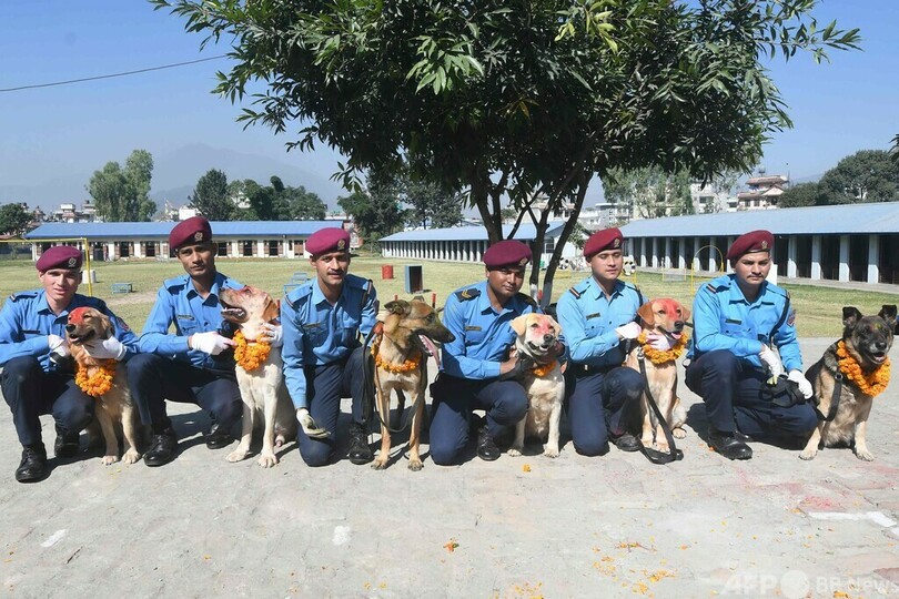 警察犬も祝福、ヒンズー教の祭り「ティハール」 ネパール