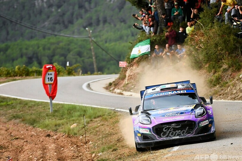【11月2日 AFP】スペインで行われた世界ラリー選手権(WRC 2022)第12戦2日目。アドリアン・フルモー(Adrien Fourmaux、フランス)とアレクサンドレ・コリア(Alexandre Coria、フランス)が乗るMスポーツ・フォードWRT(M-Sport Ford WRT)のフォード・プーマ(Ford Puma)。スペイン・サロウ(Salou)近くのラフンコサデルモンメル(La Juncosa del Montmell)で。(c)AFP