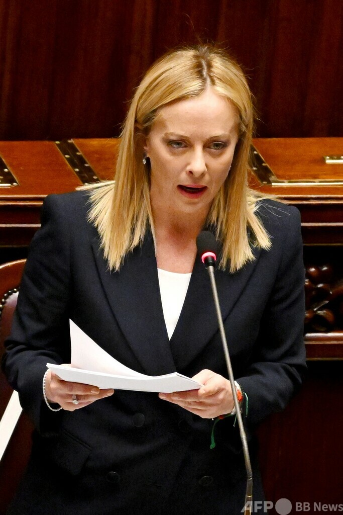 【10月25日 AFP】22日にイタリア初の女性首相に就任したジョルジャ・メローニ(Giorgia Meloni)氏(45)は25日、議会で所信表明演説を行い、欧州連合(EU)、北大西洋条約機構(NATO)、ウクライナへの支持を表明した。
