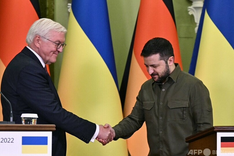 【10月26日 AFP】ドイツのフランクワルター・シュタインマイヤー(Frank-Walter Steinmeier)大統領は25日、ロシアによる軍事侵攻が始まって以来初めてウクライナを訪問した。その際、空襲警報が鳴り防空壕(ごう)への避難を余儀なくされる場面もあった。