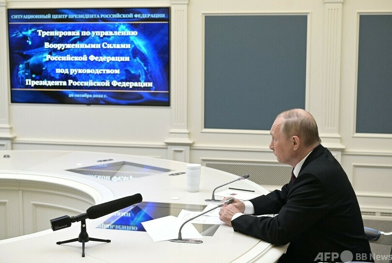 【10月26日 AFP】ロシア大統領府は26日、ウラジーミル・プーチン(Vladimir Putin)大統領が同日、核戦争の脅威に対応する戦略的核抑止部隊の訓練を指揮したと発表した。