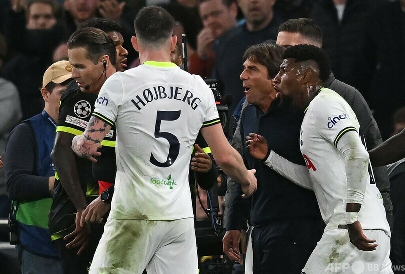 【10月27日 AFP】サッカー欧州チャンピオンズリーグ(UEFA Champions League 2022-23)は26日、グループD第5節が各地で行われ、トッテナム・ホットスパー(Tottenham Hotspur)は後半アディショナルタイムにネットを揺らすもビデオ・アシスタント・レフェリー(VAR)判定の末に得点が認められず、スポルティング・リスボン(Sporting Lisbon)と1-1で引き分けた。これに抗議して退席処分となったトッテナムのアントニオ・コンテ(Antonio Conte)監督は、VARはサッカー界に「損害」を生み出していると述べた。