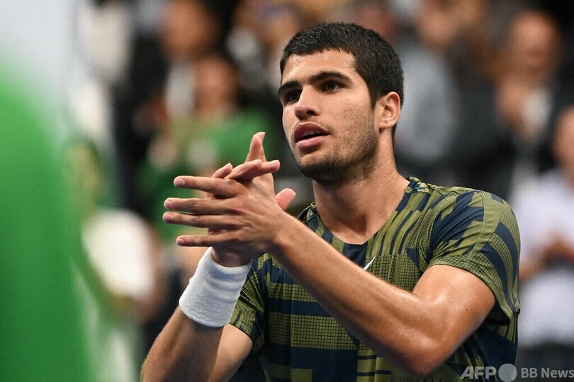 【10月27日 AFP】男子テニス、スイス・インドア(Swiss Indoors Basel 2022)は26日、シングルス2回戦が行われ、大会第1シードのカルロス・アルカラス(Carlos Alcaraz、スペイン)はボティク・ファン・デ・ザンスフルプ(Botic Van de Zandschulp、オランダ)を6-4、6-2で下し、今季のツアーでは11度目となる8強入りを果たした。