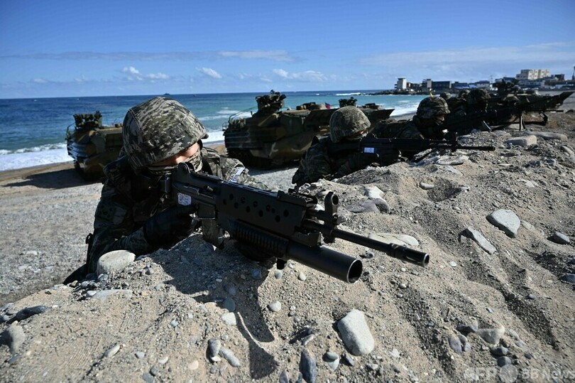 ニュース 政治・経済 韓国軍、大規模な合同上陸訓練を実施 「護国訓練」の一環 2022年10月28日 12:07 発信地:浦項/韓国 [ 韓国 韓国・北朝鮮 ] このニュースをシェア ‹ › ❮ 6/9 ❯ 韓国・浦項で実施された合同上陸訓練に参加する韓国海兵隊(2022年10月26日撮影)。(c)JUNG YEON-JE / POOL / AFP 画像作成中 ! 【10月28日 AFP】韓国軍は26日、南東部の浦項(Pohang)で大規模な合同上陸訓練を実施した。 韓国海兵隊によると、今回の訓練は定例の野外機動訓練「護国(Hoguk)訓練」の一環として行われた。(c)AFP 政治・経済 一覧へ> メディア・報道関係・法人の方向け 写真・動画 購入のお問合せ>