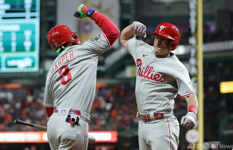 【10月29日 AFP】22MLBは28日、ワールドシリーズ(7回戦制)が開幕し、フィラデルフィア・フィリーズ(Philadelphia Phillies)は延長10回表にJ.T.リアルミュート(J.T. Realmuto)が決勝の勝ち越し本塁打を放ち、ヒューストン・アストロズ(Houston Astros)を6-5で下した。
