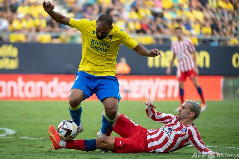 その他の試合では、終了間際のルーベン・ソブリノ(Ruben Sobrino)の得点でカディス(Cadiz CF)が3-2でアトレティコ・マドリード(Atletico de Madrid)に劇的勝利。チャンピオンズリーグでも敗退が決定したアトレティコにとっては散々な一週間となった。(c)AFP/Rik Sharma