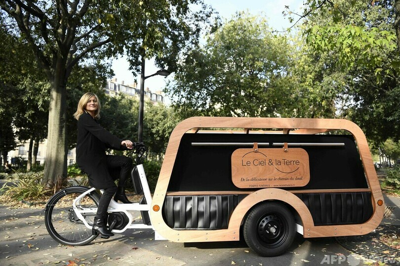 【11月7日 AFP】フランス・パリの葬儀会社「ル・シエル・エ・ラ・テール(Le Ciel et la Terre、空と大地の意)」が発表した霊きゅう自転車「コルビシクレット」。この自転車を開発した同社社長のイサベル・プリュムロー氏は、人々の歩調に合わせてひつぎを運ぶ「葬儀の新しいかたち」を提案したいと語っている。(c)AFP