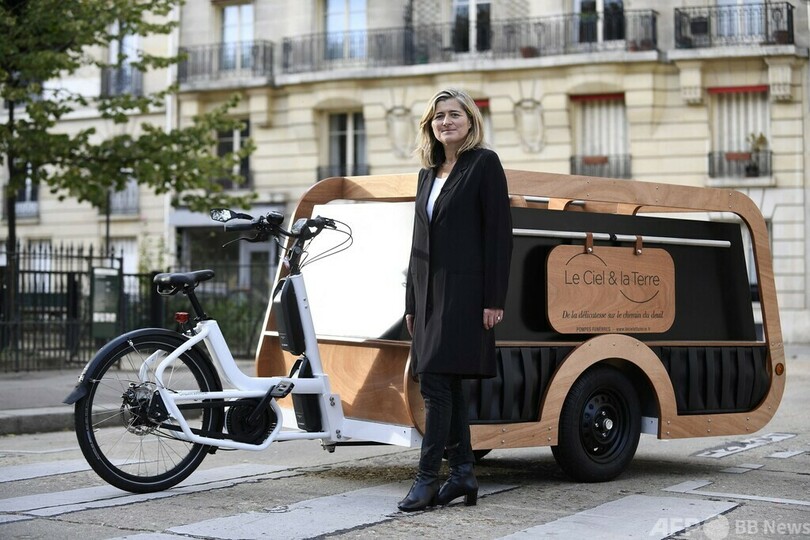 【11月7日 AFP】フランス・パリの葬儀会社「ル・シエル・エ・ラ・テール(Le Ciel et la Terre、空と大地の意)」が発表した霊きゅう自転車「コルビシクレット」。この自転車を開発した同社社長のイサベル・プリュムロー氏は、人々の歩調に合わせてひつぎを運ぶ「葬儀の新しいかたち」を提案したいと語っている。(c)AFP