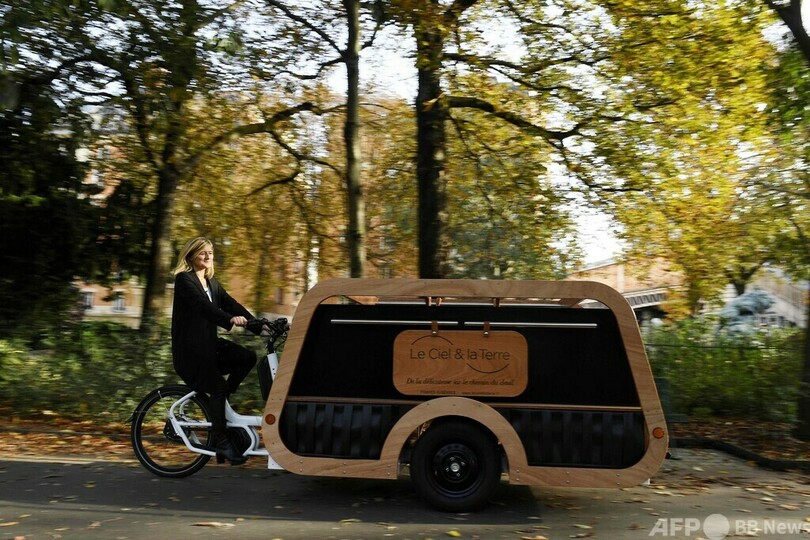 【11月7日 AFP】フランス・パリの葬儀会社「ル・シエル・エ・ラ・テール(Le Ciel et la Terre、空と大地の意)」が発表した霊きゅう自転車「コルビシクレット」。この自転車を開発した同社社長のイサベル・プリュムロー氏は、人々の歩調に合わせてひつぎを運ぶ「葬儀の新しいかたち」を提案したいと語っている。(c)AFP