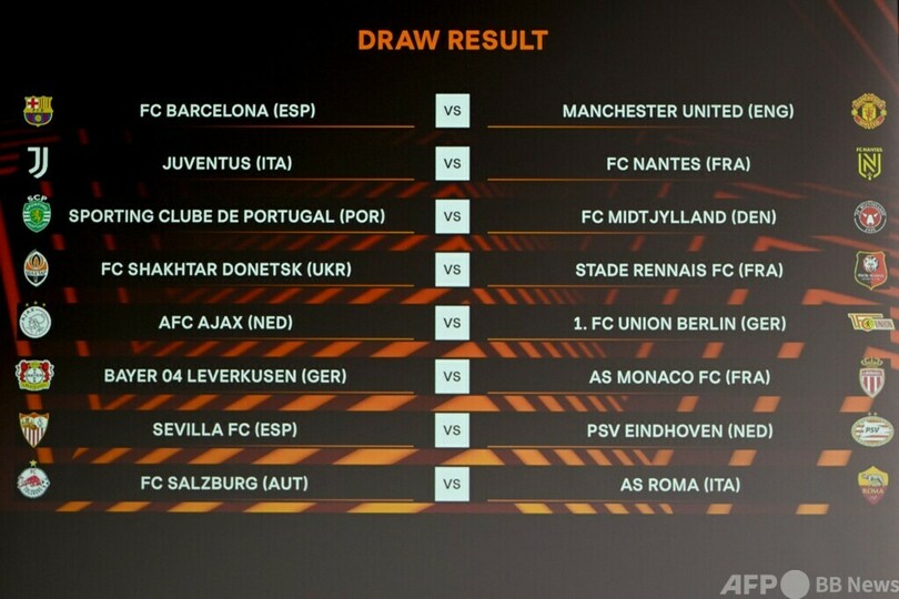 【11月8日 AFP】サッカーヨーロッパリーグ(UEFA Europa League 2022-23)、決勝トーナメントプレーオフの組み合わせ抽選会が7日、スイス・ニヨン(Nyon)で行われ、FCバルセロナ(FC Barcelona)とマンチェスター・ユナイテッド(Manchester United)が対戦することになった。