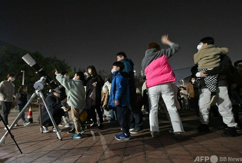 ニュース ライフ 夜空に「ブラッドムーン」 各地で皆既月食観測 2022年11月9日 0:02 発信地:東京 [ 日本 アジア・オセアニア ] このニュースをシェア ‹ › ❮ 18/30 ❯ 韓国・ソウルで皆既月食を観察する人々(2022年11月8日撮影)。(c)JUNG YEON-JE / AFP 画像作成中 ! 【11月9日 AFP】「ブラッドムーン」とも呼ばれる皆既月食が8日、各地で観測された。(c)AFP ライフ 一覧へ> メディア・報道関係・法人の方向け 写真・動画 購入のお問合せ>