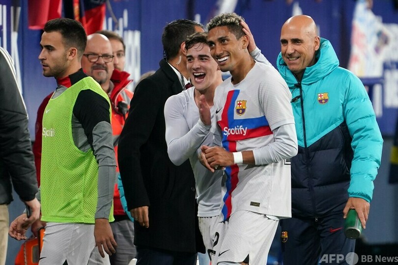 相手に先行を許したバルセロナは、ロベルト・レワンドフスキ(Robert Lewandowski)が30分過ぎに2枚目のイエローカードをもらって早くも退場になったが、後半開始直後にペドリ(Pedro Gonzalez Lopez 'Pedri’)のゴールで追いつくと、85分にラフィーニャ(Raphinha)がヘディングシュートを決めて逆転勝ちを収めた。