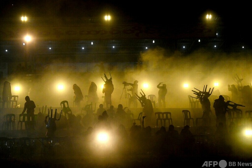 【今日の1枚】椅子をかざして火の粉を避ける ミャンマー