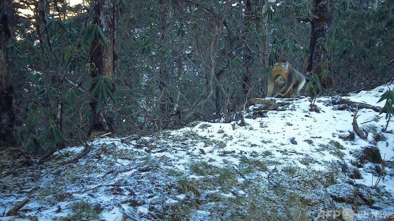 今回、野生のパンダなどの希少な野生動物が発見されたのは、標高約1800メートルから3800メートルのエリアだということです。野生のパンダが生息するエリアは、主にヤダケの林で、気候が温暖で湿度が高く、植生被覆率100%という自然環境に恵まれた場所です。一方、ユキヒョウの姿が記録されたところは、標高3500メートル以上の高山の草地やシャクナゲの林です。成都市大邑県(Dayi)と四川省崇州市(Chongzhou)の鶏冠山国家森林公園の境のエリアでは、さまざまな野生動物が発見され、「動物の通り道」と呼ばれています。(c)CGTN Japanese/AFPBB News