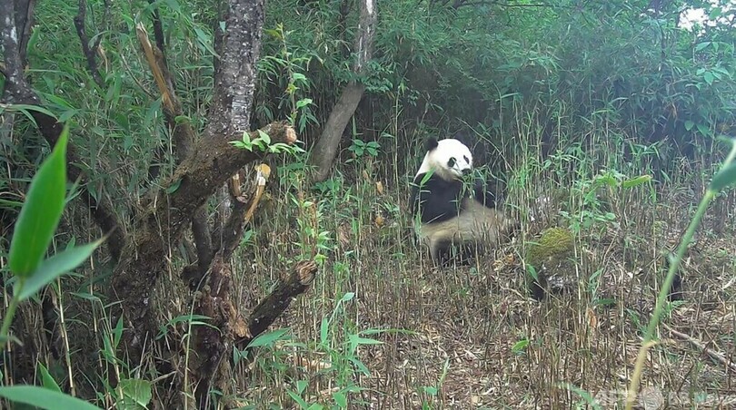 今回、野生のパンダなどの希少な野生動物が発見されたのは、標高約1800メートルから3800メートルのエリアだということです。野生のパンダが生息するエリアは、主にヤダケの林で、気候が温暖で湿度が高く、植生被覆率100%という自然環境に恵まれた場所です。一方、ユキヒョウの姿が記録されたところは、標高3500メートル以上の高山の草地やシャクナゲの林です。成都市大邑県(Dayi)と四川省崇州市(Chongzhou)の鶏冠山国家森林公園の境のエリアでは、さまざまな野生動物が発見され、「動物の通り道」と呼ばれています。(c)CGTN Japanese/AFPBB News