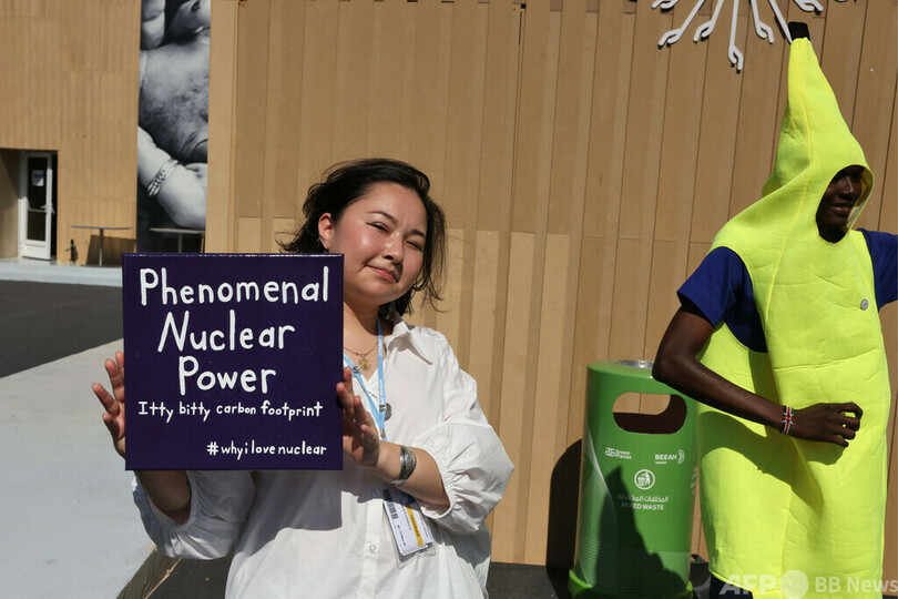 【11月12日 AFP】エジプト東部シャルムエルシェイク(Sharm el-Sheikh)で開催されている国連気候変動枠組み条約第27回締約国会議(COP27)の会場前で、原子力推進派の環境活動家が「核バナナ」に扮(ふん)してデモを行った。(c)AFP