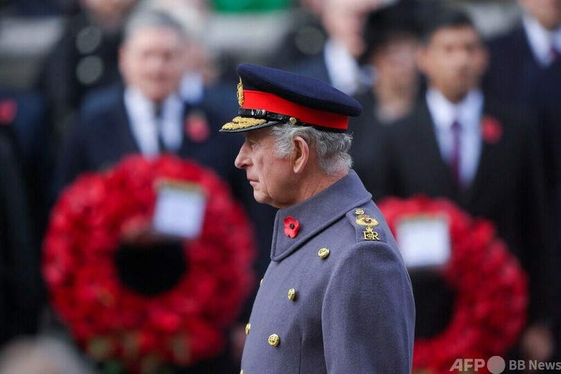 【11月14日 AFP】英国のチャールズ国王(King Charles III)は13日、毎年恒例の戦没者追悼式典(Remembrance Sunday)に即位後初めて出席し、英国や英連邦諸国の戦没者を悼み献花した。