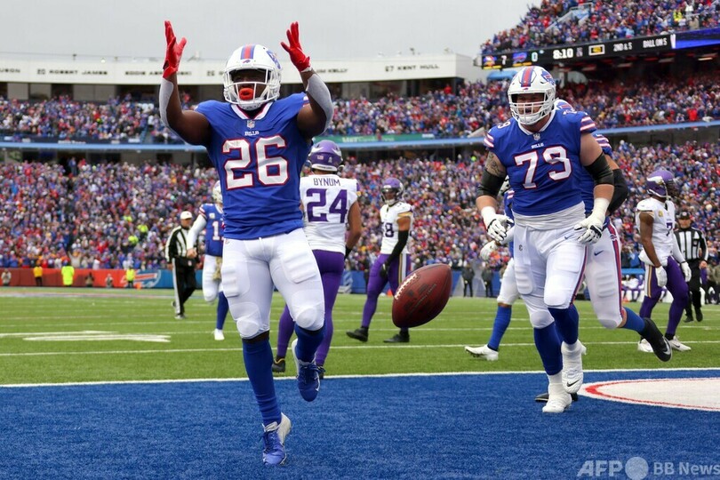 今季の強さを証明するかのような勝利を収めたバイキングスは、これで8勝1敗。一方のビルズは6勝3敗となり、マイアミ・ドルフィンズ(Miami Dolphins)にAFC東地区1位を譲った。ドルフィンズは39-17でクリーブランド・ブラウンズ(Cleveland Browns)に勝利し、7勝3敗としている。