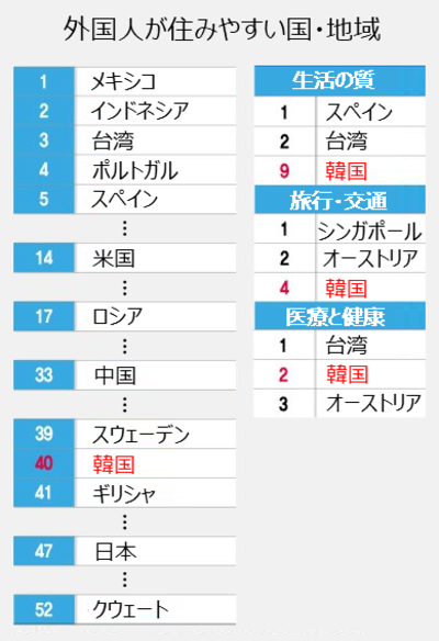 「外国人が住みやすい国・地域」韓国40位、米国14位…1位は? – KOREA WAVE
