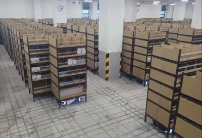 韓国京畿道軍浦(クンポ)にあるCJ大韓通運スマートフルフィルメント(Fulfillment=商品の受注から決済に至るまでの業務全般)センター2階(スマート階)。ここでは、魔法のように数百個の棚が一糸乱れず動いている。動力源は人ではない。ロボット掃除機のような形をした無人搬送車(AGV)が、棚の下で、床に敷かれたQRコードを認識し、商品と箱を運んでいる。