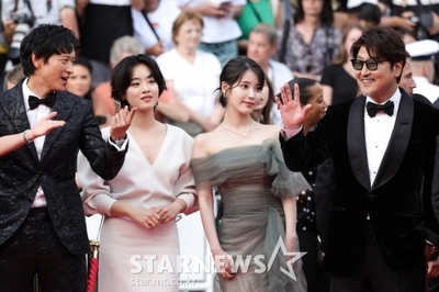 レッドカーペットの経験が多いソン・ガンホは、タキシードとサングラスをかけて登場し、手を振って投げキスを送りながら余裕のある姿を見せた。カン・ドンウォンもタキシード姿を誇示した。初めてカンヌのレッドカーペットを歩くIUは、肩の出る優雅なドレス、イ・ジュヨンも白いドレスを姿を披露した。