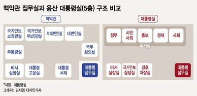 大統領室は「龍山大統領室では大統領と主要参謀が同じ空間で勤務する。米大統領がホワイトハウスで参謀の部屋に随時出入りしながら対話を交わすように、ユン大統領も同じ空間の中で参謀と懸案を議論する」と説明した。