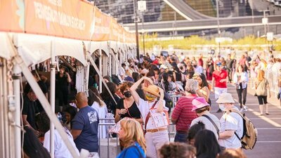 BTSの公演会場に設けられたブースでグッズを買うために並ぶファン(写真=HYBE)(c)MONEYTODAY