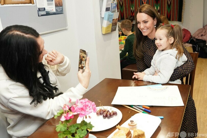 【11月18日 AFP】英国のキャサリン皇太子妃(Catherine, Princess of Wales)は17日、ロンドン西郊レディング(Reading)にあるウクライナ・コミュニティーセンターを訪問し、ロシアによる侵攻を逃れウクライナから避難してきた人々と交流した。(c)AFP