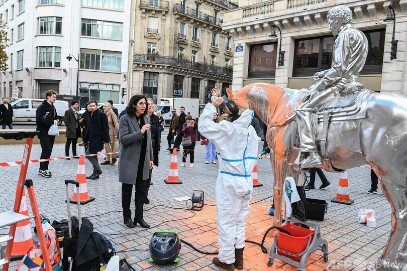 被害を受けたのは、仏富豪フランソワアンリ・ピノー(Francois-Henri Pinault)氏のコレクションの一部を所蔵する現代美術館「商品取引所(Bourse de Commerce)」前に展示されていた等身大の彫刻「馬と騎手(Horse and Rider)」。