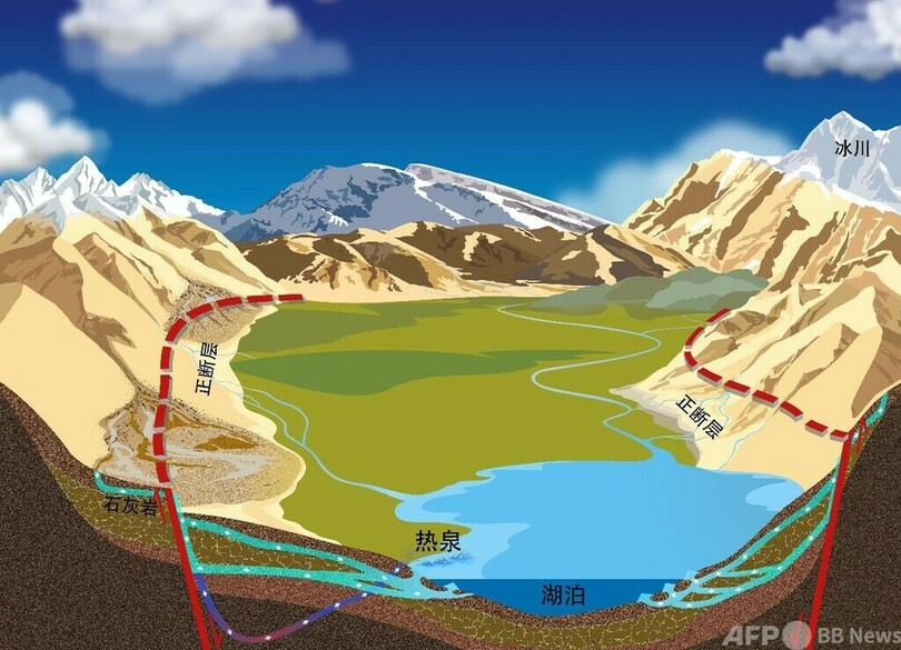 また、チベット高原西部の地下水の形成が地域の地質構造の特徴と関係している可能性もあるとされています。高標高地域の氷河と積雪の雪溶け水は活断層の破砕帯を通って地下水を補給し、低標高地域で湖に合流しています。地下水の補給が安定的で循環周期が長いため、大量の地下水の補給が湖の水位の季節的推移などに著しく変化をもたらしているということです。(c)CGTN Japanese/AFPBB News