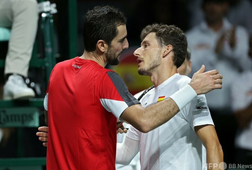 【11月24日 AFP】男子テニスの国別対抗戦デビスカップ(Davis Cup 2022)は23日、決勝ラウンドの準々決勝が行われ、クロアチアが世界ランク1位のカルロス・アルカラス(Carlos Alcaraz)と同2位のラファエル・ナダル(Rafael Nadal)を欠くスペインを2-0で下し、4強入りを決めた。