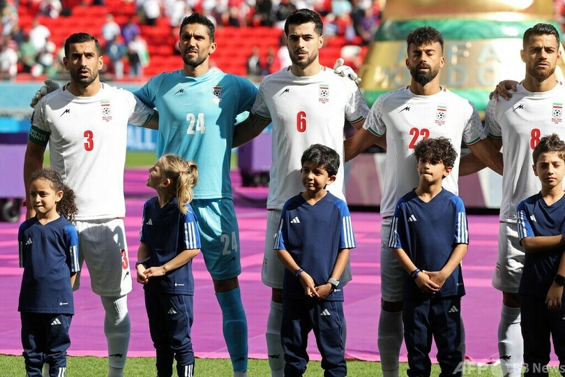 イラン代表は、21日の対戦前には無表情で起立したまま国歌を斉唱せず、イラン国内で続く反政府デモへの連帯を示したものとみられていた。