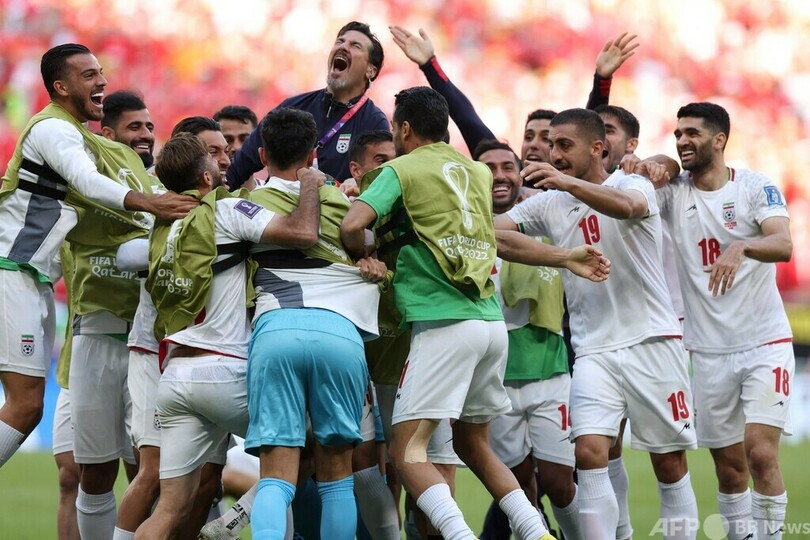 初戦はイングランドに2-6で敗れ、この日負ければ敗退が決まっていたイラン。だが、これでイングランドに次ぐ組2位に浮上。29日に政治的に対立する米国に勝利すれば、史上初のW杯グループリーグ突破が決まる。 (c)AFP/Jed Court