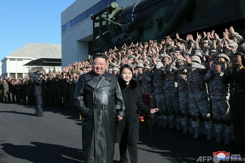 【11月27日 AFP】北朝鮮の国営メディアは27日、金正恩(キム・ジョンウン、Kim Jong un)朝鮮労働党総書記が娘を伴って、新型大陸間弾道ミサイル(ICBM)「火星17(Hwasong 17)」の発射実験を成功させた科学者らとの記念撮影を行ったと伝えた。金総書記は「世界最強」の核戦力を目指すと述べたという。