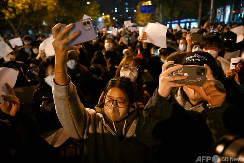 【11月28日 AFP】中国各地で27日、新型コロナウイルス感染拡大を徹底的に封じ込める「ゼロコロナ」政策に対する抗議行動が一斉に行われ、主要都市で数百人規模の街頭デモが相次いだ。英BBCは、デモを取材していた記者1人が警察に逮捕され、殴打されたと発表した。
