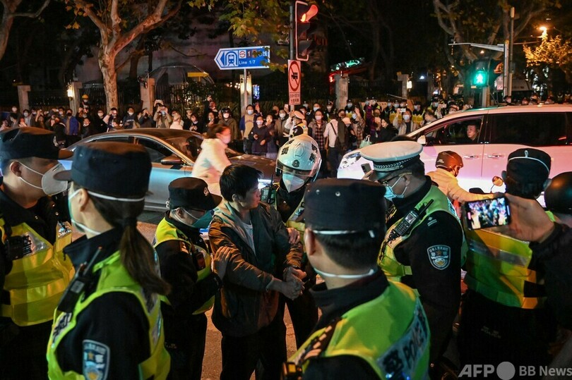 中国最大の都市・上海では、中心部のウルムチ通りで26日夜から27日未明にかけ、「習近平退陣」「共産党退陣」などと叫ぶデモが行われ、警官隊との衝突に発展した。