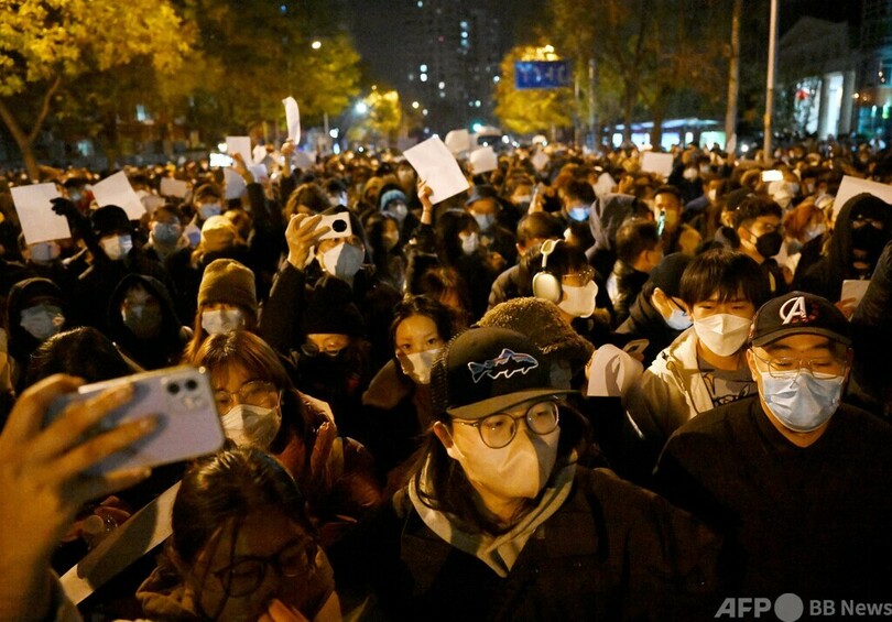 【11月28日 AFP】中国各地で27日、新型コロナウイルス感染拡大を徹底的に封じ込める「ゼロコロナ」政策に対する抗議行動が一斉に行われ、主要都市で数百人規模の街頭デモが相次いだ。英BBCは、デモを取材していた記者1人が警察に逮捕され、殴打されたと発表した。