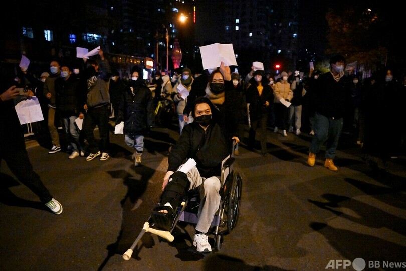 【11月28日 AFP】中国各地で27日、新型コロナウイルス感染拡大を徹底的に封じ込める「ゼロコロナ」政策に対する抗議行動が一斉に行われ、主要都市で数百人規模の街頭デモが相次いだ。英BBCは、デモを取材していた記者1人が警察に逮捕され、殴打されたと発表した。