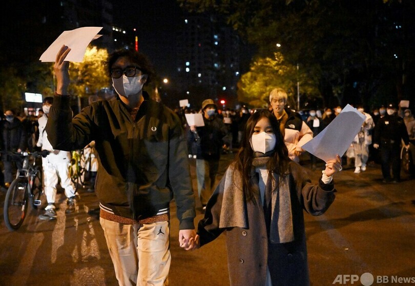 【11月28日 AFP】中国各地で27日、新型コロナウイルス感染拡大を徹底的に封じ込める「ゼロコロナ」政策に対する抗議行動が一斉に行われ、主要都市で数百人規模の街頭デモが相次いだ。英BBCは、デモを取材していた記者1人が警察に逮捕され、殴打されたと発表した。