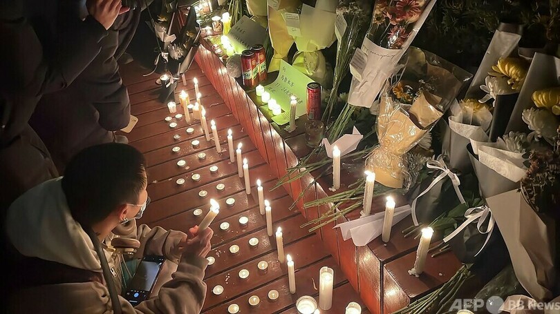 北京大学(Peking University)や、南京(Nanjing)、西安(Xi'an)、広州などの大学では、28日未明にかけてろうそくをともすなどの抗議集会が行われた。(c)AFP/Matthew Walsh, with Laurie Chen and Michael Zhang in Beijing