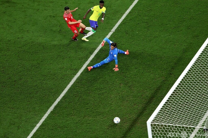 しかし83分、味方からのパスをロドリゴ(Rodrygo Silva de Goes)が落とすと、ペナルティーエリア内にいたカゼミーロがボレーシュート。これが相手DFマヌエル・アカンジ(Manuel Akanji)にわずかに当たるも軌道が変わってネットを揺らし、ブラジルが先制した。