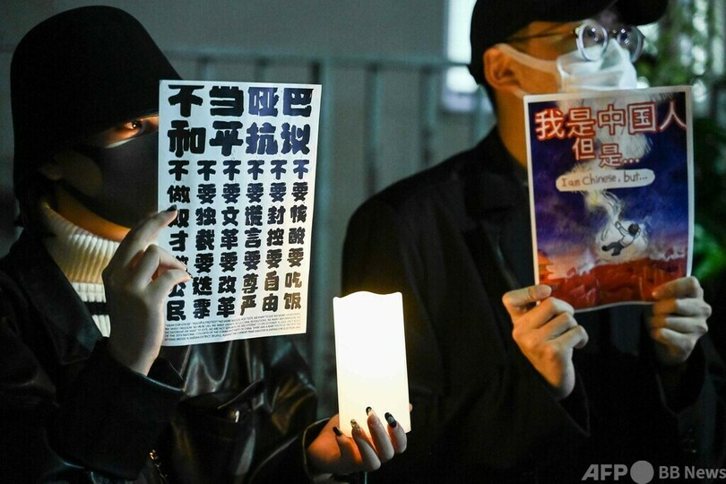 ニュース 社会 都内でも中国での「ゼロコロナ」抗議に連帯 2022年11月29日 11:54 発信地:東京 [ 日本 アジア・オセアニア ] このニュースをシェア ‹ › ❮ 2/5 ❯ 東京都内の中国大使館前で行われた、中国での「ゼロコロナ」政策への抗議行動に連帯を示すデモの参加者(2022年11月28日撮影)。(c)Richard A. Brooks / AFP 画像作成中 ! 【11月29日 AFP】東京都内の中国大使館前で28日、中国国内での新型コロナウイルス感染拡大を徹底的に封じ込める「ゼロコロナ」政策に対する抗議行動に連携を示すデモが行われた。(c)AFP 社会 一覧へ> メディア・報道関係・法人の方向け 写真・動画 購入のお問合せ>