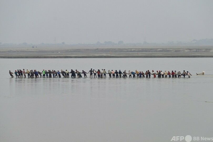 ニュース ライフ 今日の1枚 【今日の1枚】浅瀬で綱引き? インド 2022年12月8日 12:15 発信地:アラハバード/インド [ インド アジア・オセアニア ] このニュースをシェア ‹ › ❮ 1/3 ❯ インド・アラハバードで、毎年恒例のヒンズー教の祭典「マグメーラ」に合わせてガンジス川に浮橋を設置しようと浅瀬でブイを付けたロープを引く労働者ら(2022年11月26日撮影)。(c)SANJAY KANOJIA / AFP 画像作成中 ! 【12月8日 AFP】インド・アラハバード(Allahabad)で、毎年恒例のヒンズー教の祭典「マグメーラ(Magh Mela)」に合わせてガンジス(Ganges)川に浮橋を設置しようと浅瀬でブイを付けたロープを引く労働者ら。(c)AFP ライフ 一覧へ> メディア・報道関係・法人の方向け 写真・動画 購入のお問合せ>