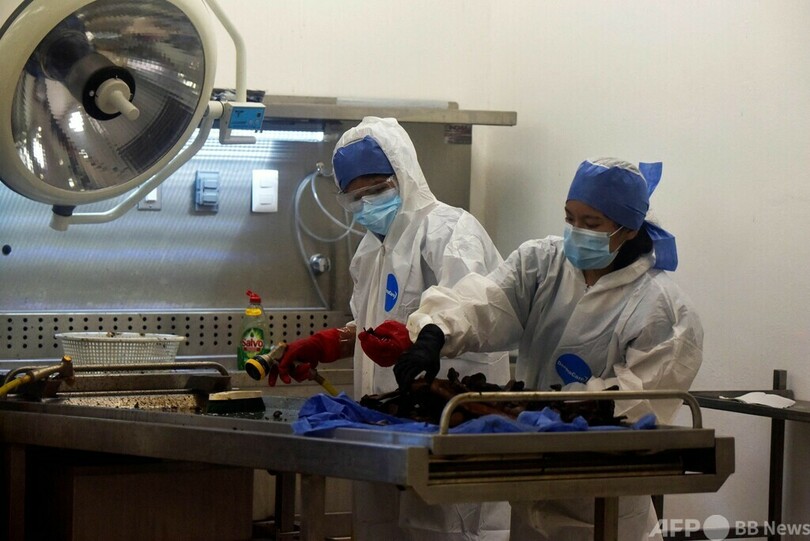 「死者は増え続け、行方不明者も後を絶ちません」と話す法人類学者のヌビア・マエストロ(Nuvia Maestro)氏(36)は、遺体の年齢を調べるために肋骨(ろっこつ)を加熱し組織を取り除いていた。室内では香がたかれているが、それでも「死のにおい」が漂い、ハエが飛んでいた。
