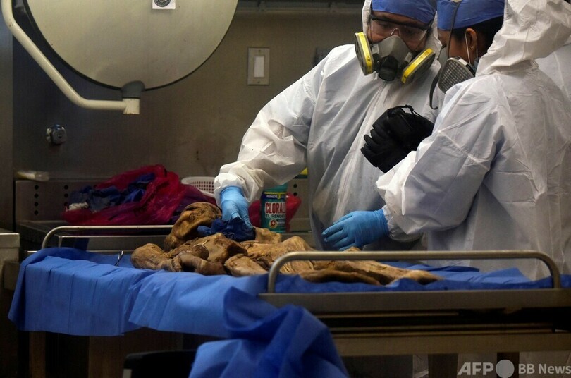 「死者は増え続け、行方不明者も後を絶ちません」と話す法人類学者のヌビア・マエストロ(Nuvia Maestro)氏(36)は、遺体の年齢を調べるために肋骨(ろっこつ)を加熱し組織を取り除いていた。室内では香がたかれているが、それでも「死のにおい」が漂い、ハエが飛んでいた。