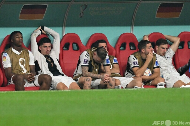 しかし、日本がドイツとの初戦に続いてスペインに2-1で勝利する金星を挙げたため、ドイツは勝ち点4で並んだスペインとの得失点差により、80年ぶりの早期敗退を喫した前回ロシア大会(2018 World Cup)に続いてのグループリーグ敗退となった。(c)AFP/Daniel WIGHTON