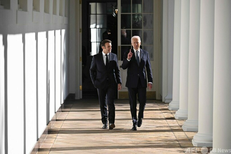マクロン氏は前日から国賓として米首都ワシントンを訪問している。バイデン氏が国賓を迎えたのは就任後初。